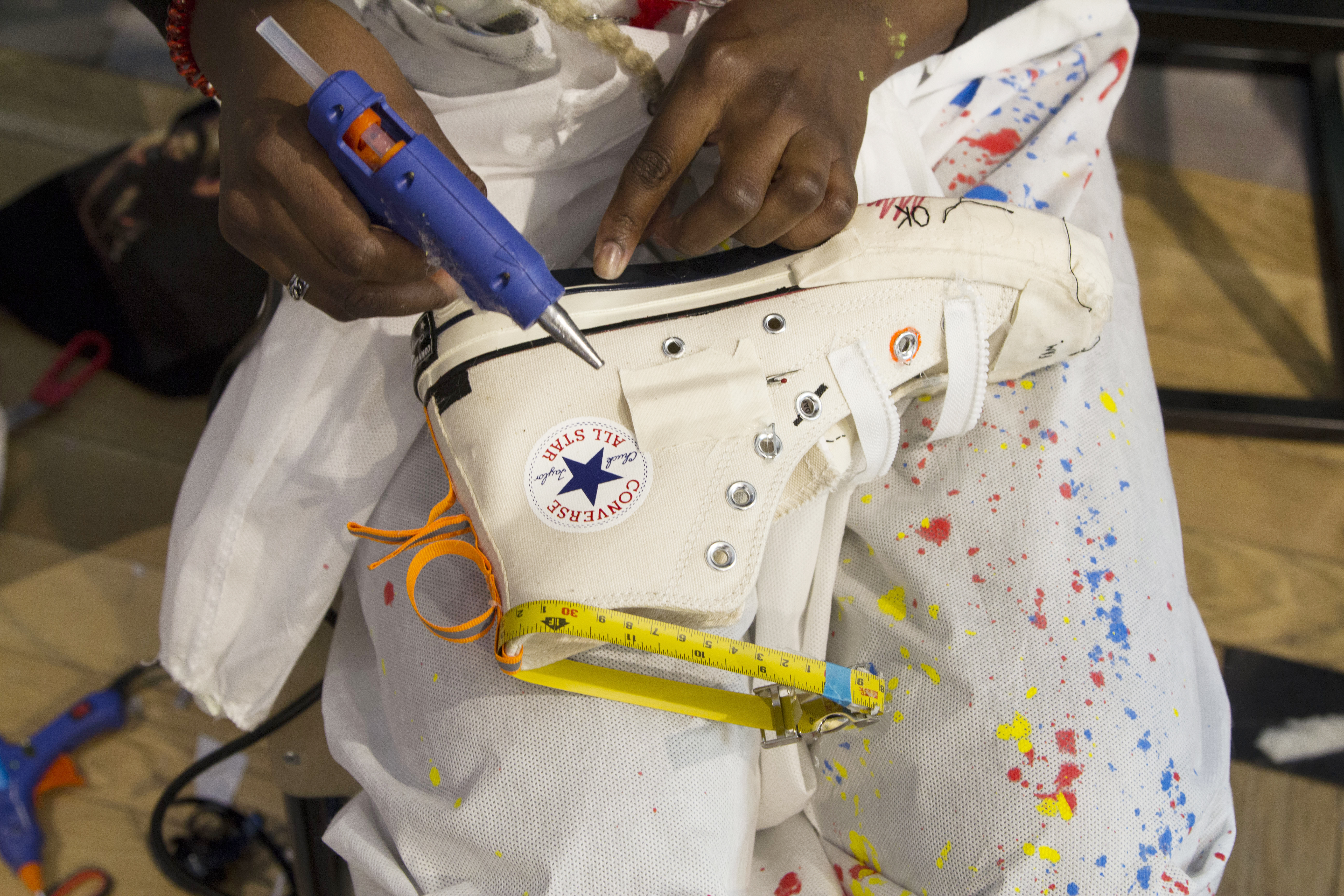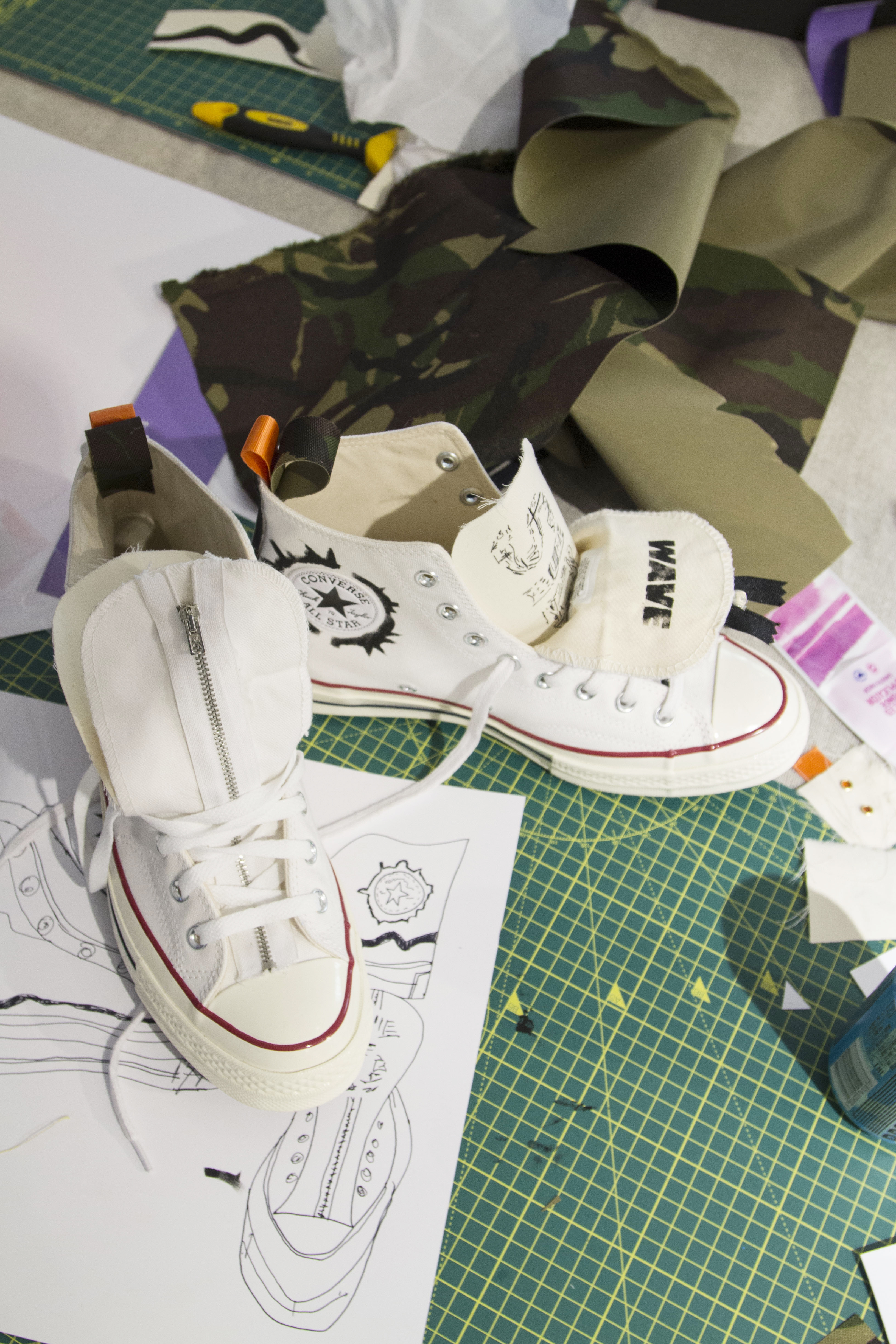 “Self Construct”- a workshop where our extended network of influential creatives re-contructed the classic Chuck Taylor. No rules, mountains of tools and the drive to create. At the end each creative took their trainers home with a second fresh pair and a Jason Marks goodie bag to keep them both box fresh.